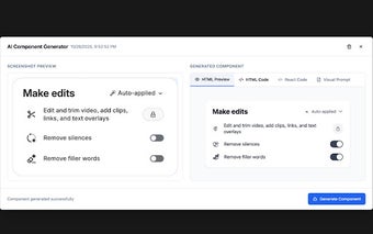 Dirty Prompt — это универсальное расширение для Chrome, предназначенное для упрощения веб-разработки путем преобразования элементов веб-страниц в код React и HTML. Этот бесплатный инструмент позволяет пользователям захватывать скриншоты конкретных элементов на любой веб-странице, облегчая создание повторно используемых компонентов. Благодаря своей способности генерировать как компоненты React TypeScript, так и отдельные компоненты HTML, он удовлетворяет потребности разработчиков, стремящихся улучшить свой рабочий процесс и эффективность.
